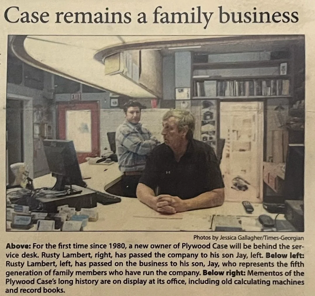 In 2017, Rusty Lambert handed the keys to his son, Jay Lambert. This is where the story becomes especially meaningful. Jay’s father, Rusty, is the grandson of Doc New (of D.F. New Lumber Company), and his mother, Pam Hamrick Lambert, is the granddaughter of J. V. Hamrick Sr. and the daughter of J. V. Hamrick Jr. As a result, Plywood Case now has a single bloodline connection to its origins, spanning five generations of family ownership.
